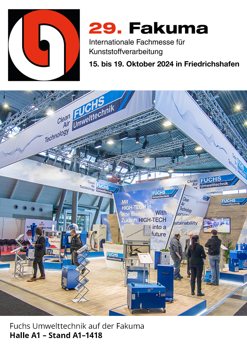 Fuchs Umwelttechnik präsentiert seine Kompetenz in der Luftreinhaltung für die Kunststoffverarbeitung.